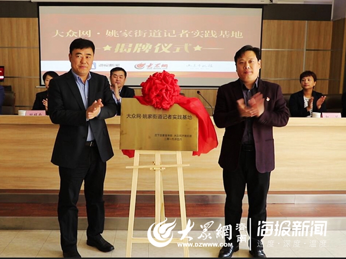随后,山东省互联网传媒集团党委副书记、总编辑刘加增与历下区委常委、宣传部长王海清共同为“大众网·姚家街道记者实践基地”揭牌。